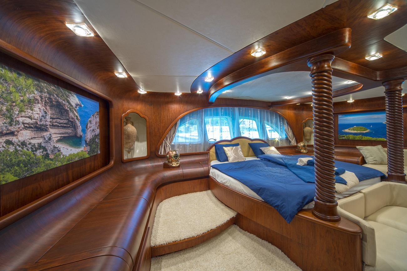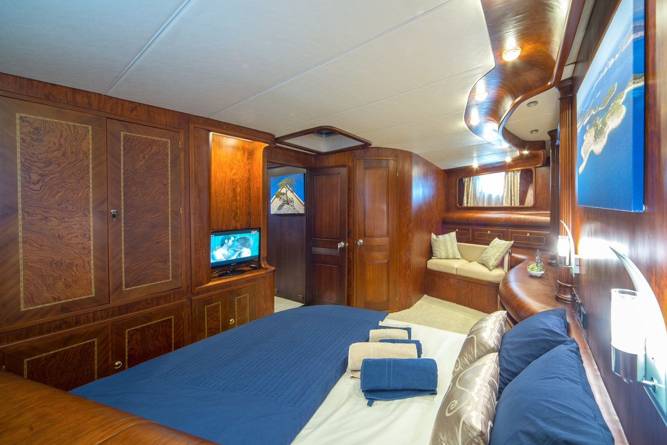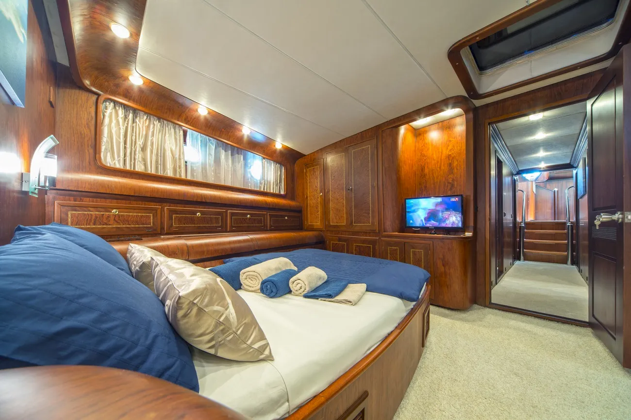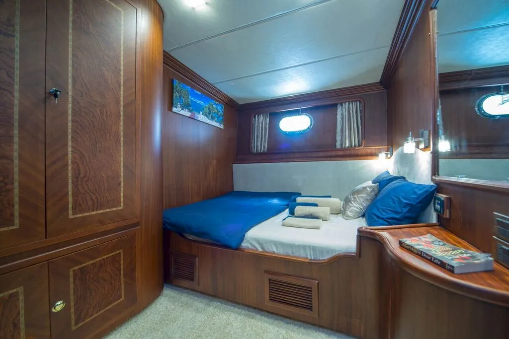 1 Master cabin, 1 VIP cabin, 2 double bed cabins; 1 twin cabin Bed Configuratin: 200 cm long x 165 cm wide on top, 214 cm wide in the middle, 160 cm wide on the bottom | |