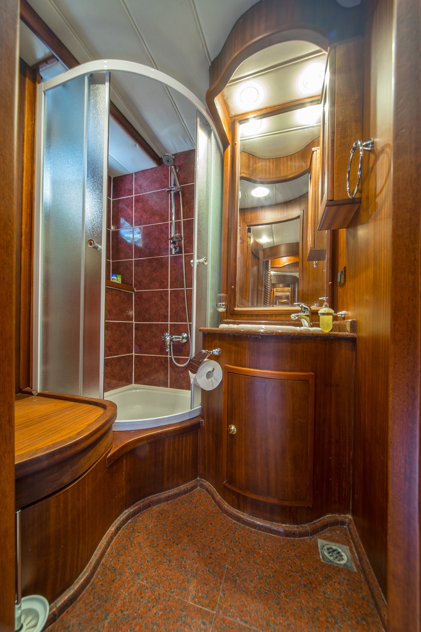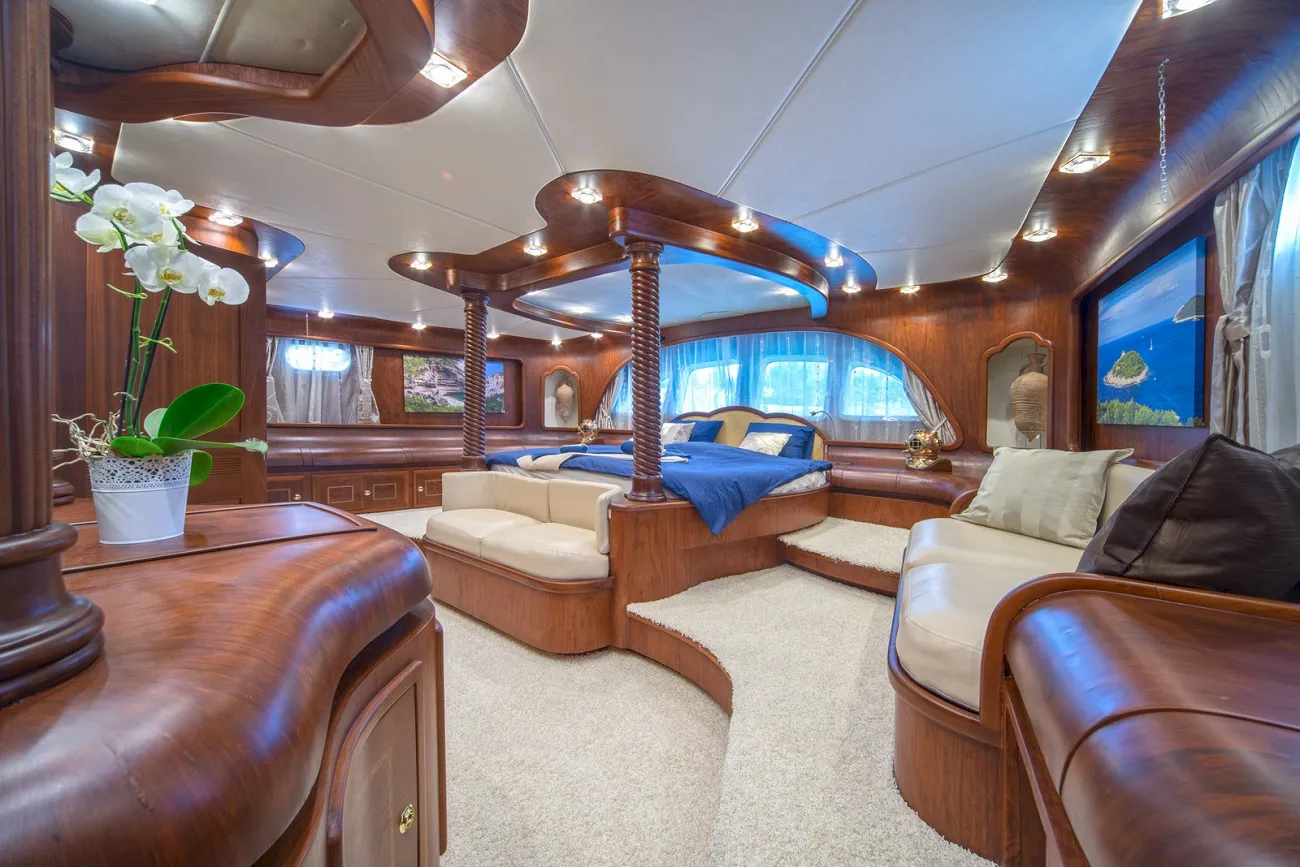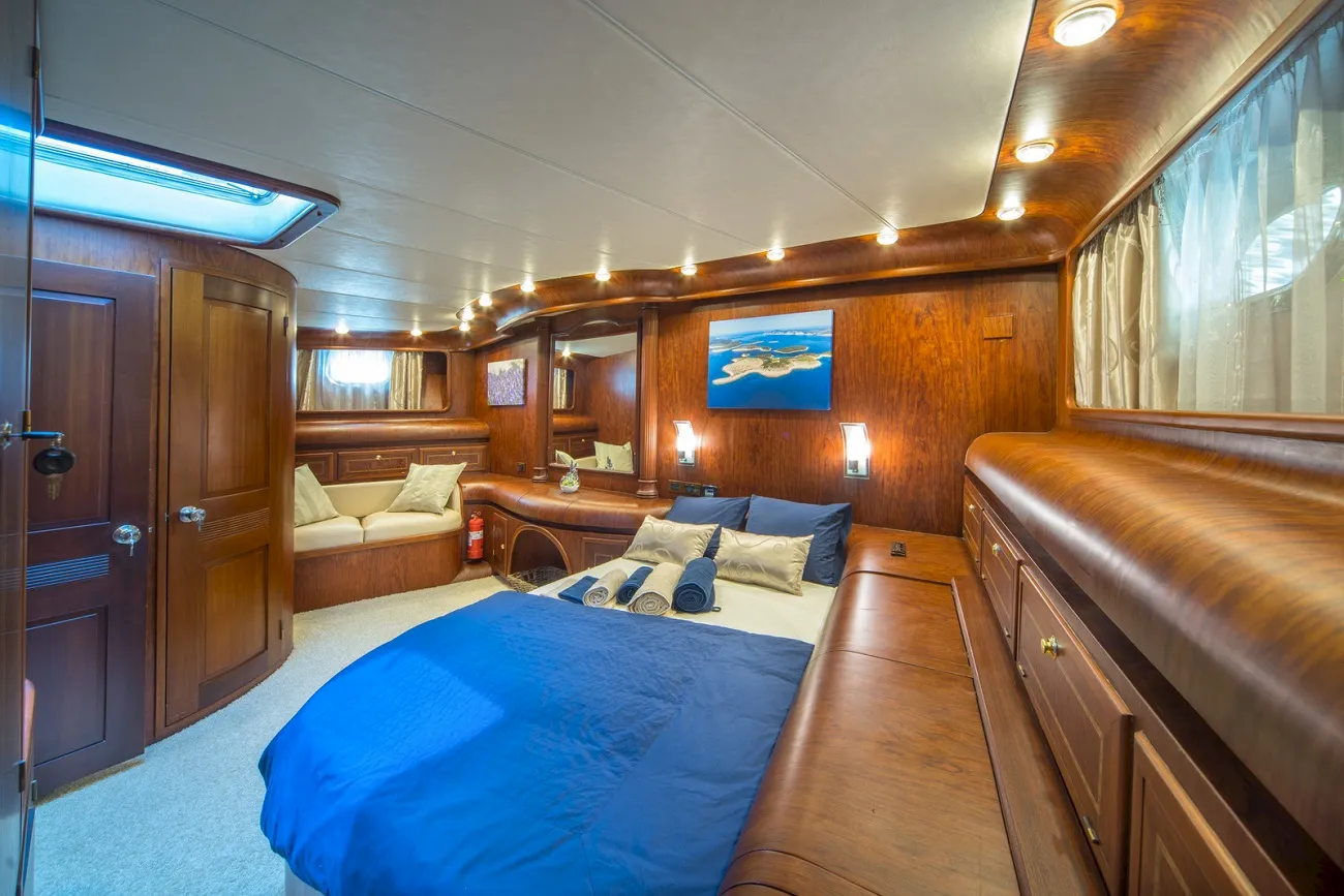 1 Master cabin, 1 VIP cabin, 2 double bed cabins; 1 twin cabin Bed Configuratin: 200 cm long x 165 cm wide on top, 214 cm wide in the middle, 160 cm wide on the bottom | |
