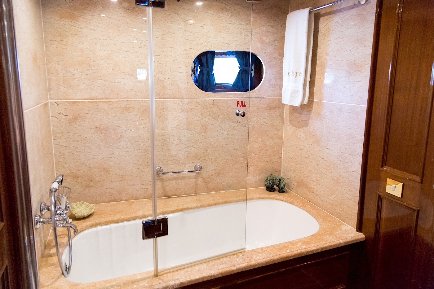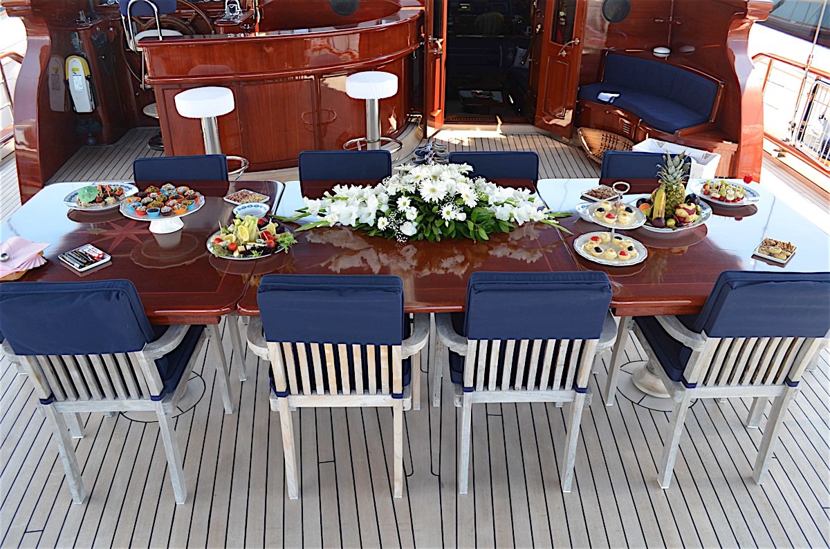 Blue Eyes possesses a most comprehensive on board entertainment system: 3,000 DVD and 5,000 music titles are available on the system.