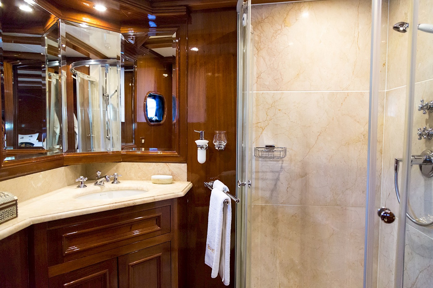 Master cabin with 2 bathrooms: one with shower and the other with bath tub; 2 double cabins with en suite bathrooms; 2 twin cabins with en suite bathrooms. | |