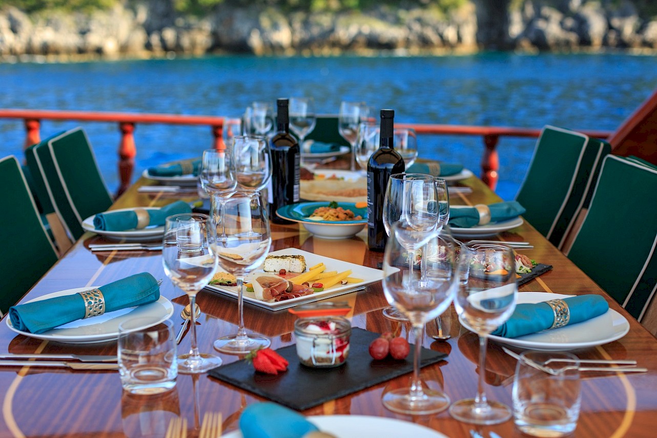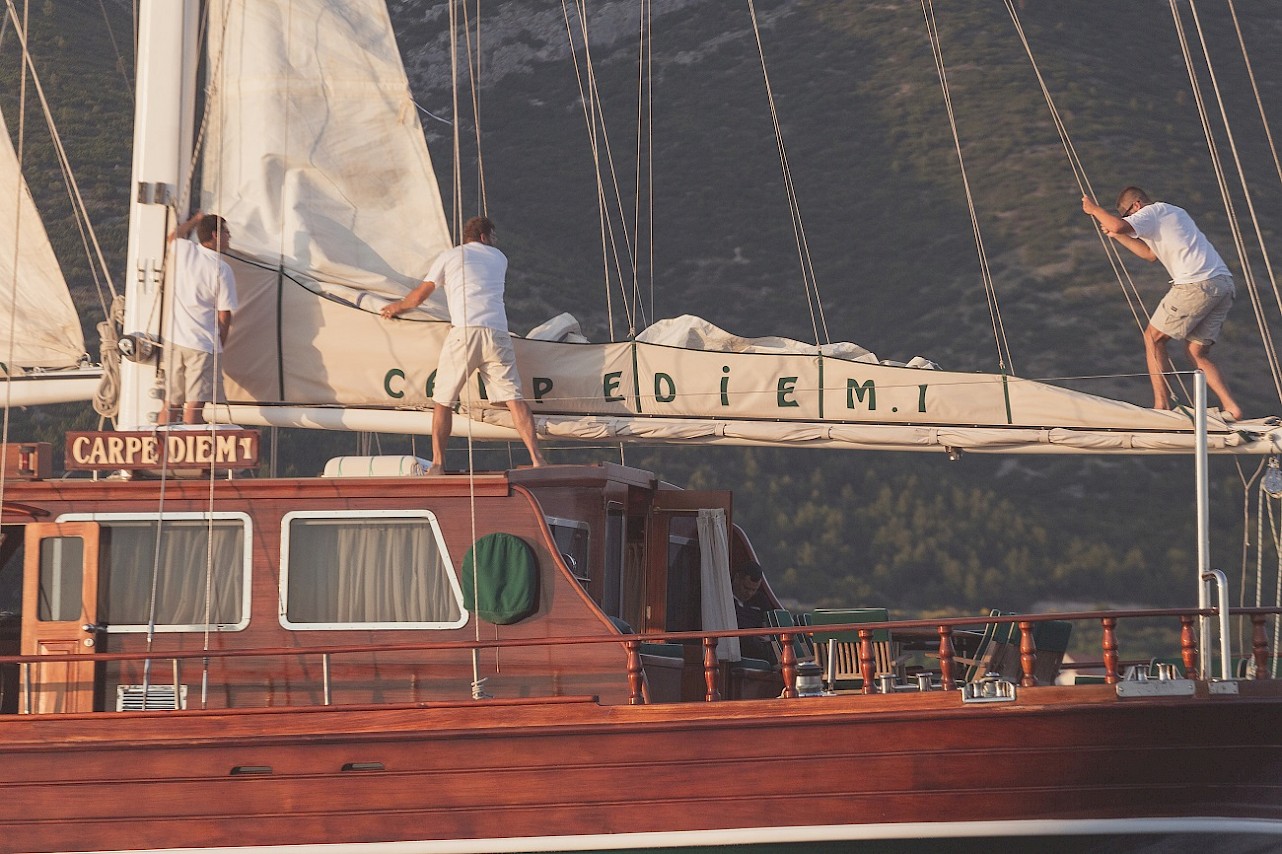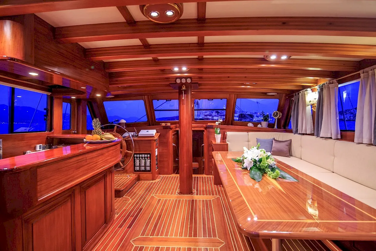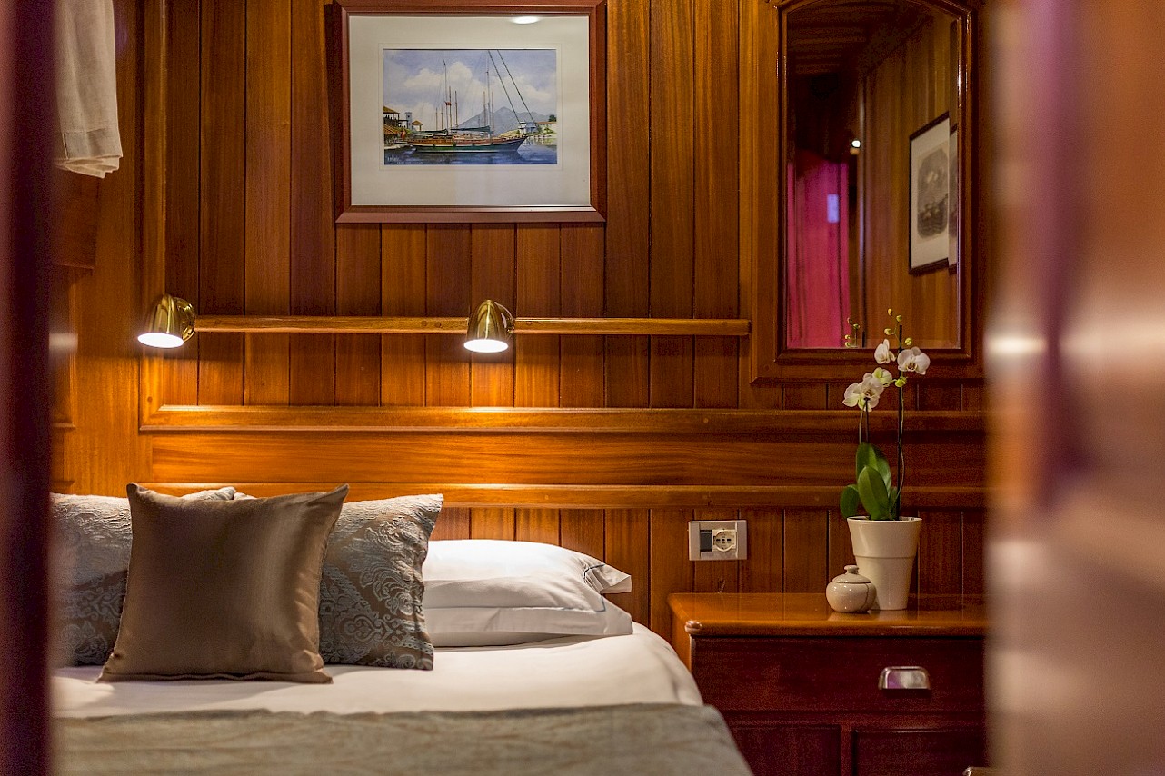 All cabins with ensuite bathroom. The full-beam master cabin has a king size berth and an additional single berth. The three guest cabins are of a comparable size, each with ample storage space. All berths are very comfortable. Opening portholes supply abundant fresh air. | |