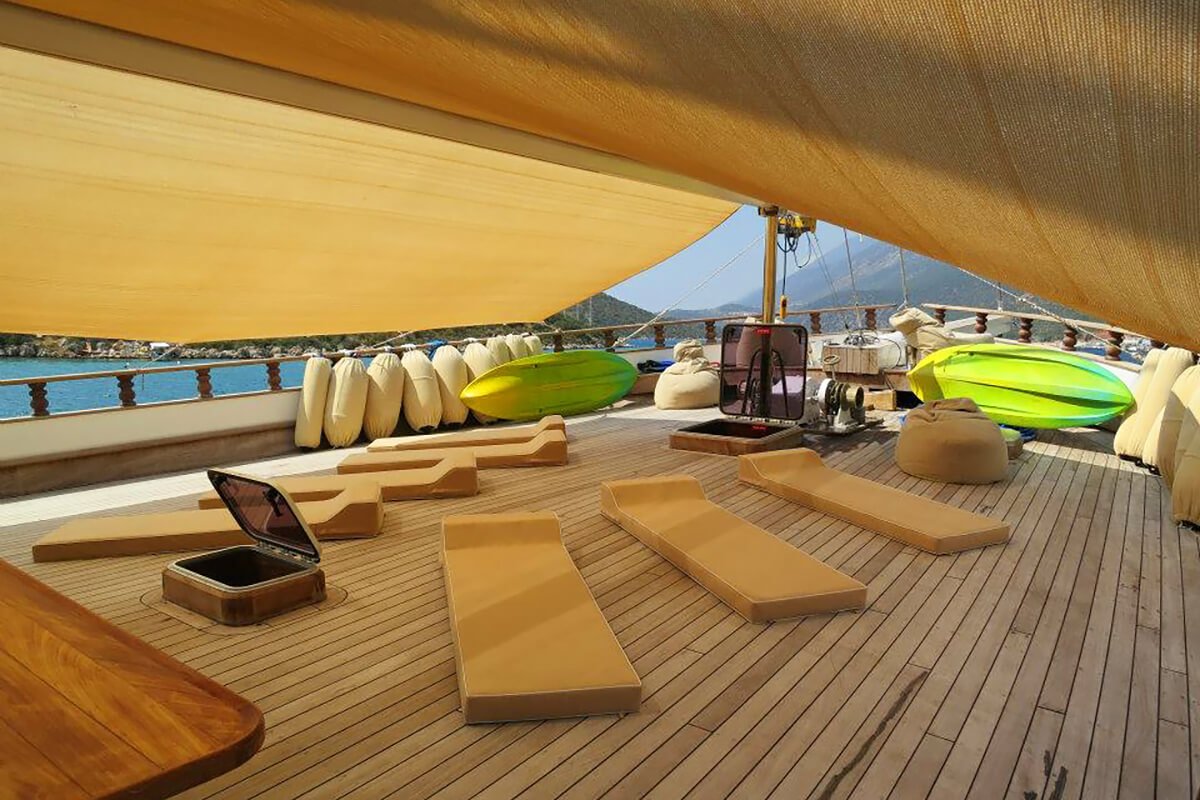 5.20 m tender with 70 hp outboard engine, waterskii, 2 paddle boards, 2 canoes, ringo, snorkelling equipments, fishing equipment for children.