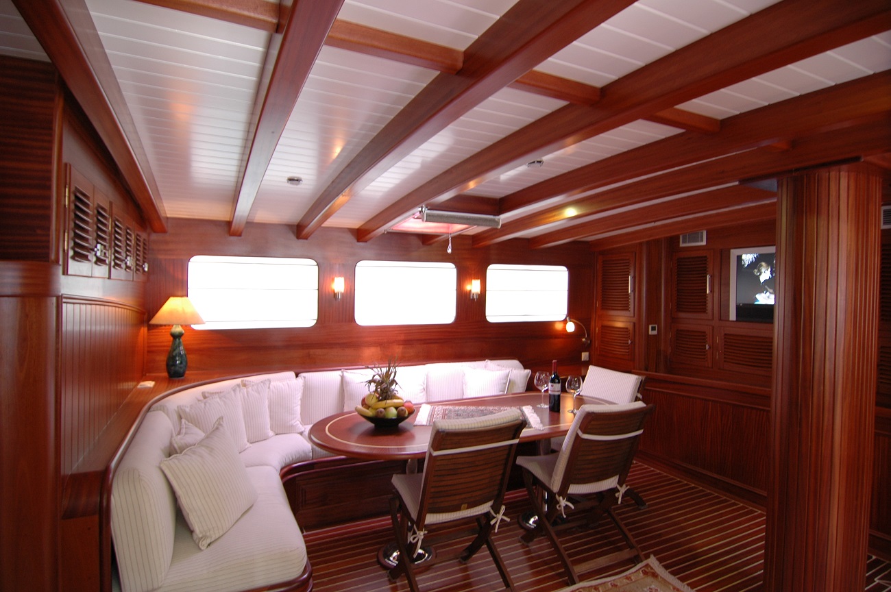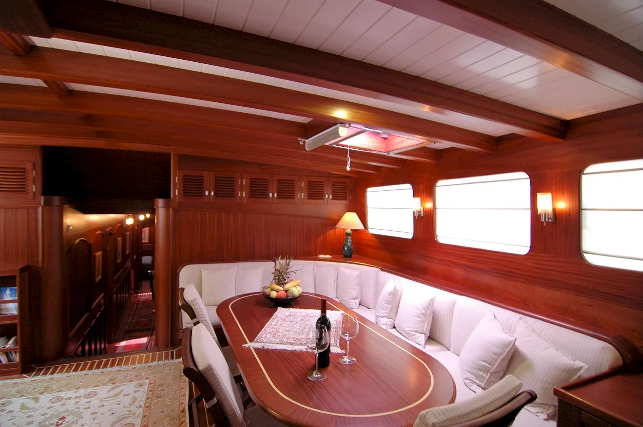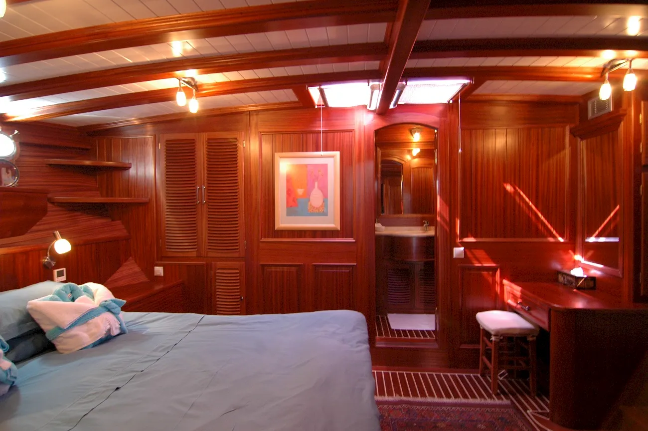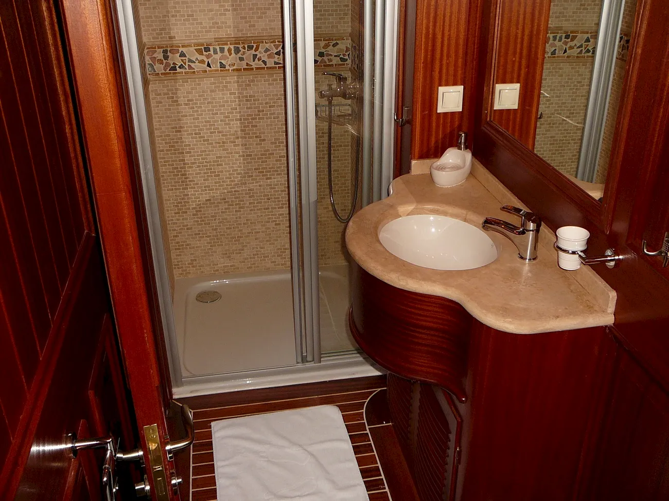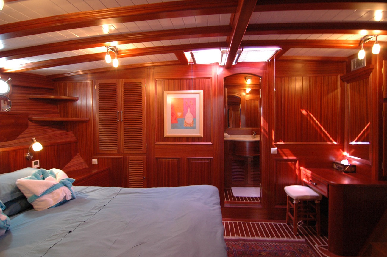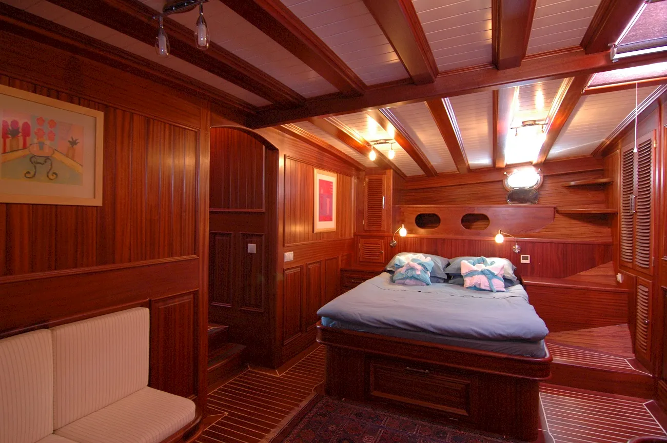 Sleeps 12 guests in 6 large cabins (+2 small children with additional child beds) 2 Master(double bed: 150 x 210 and 180 x 200 cm) 2 Double (double beds: 150 x 200) 2 Twin (single beds: 90 x 200 – which could also convert into King Size double beds upon request) Ensuite bathrooms with shower cabins and electric toilets | |