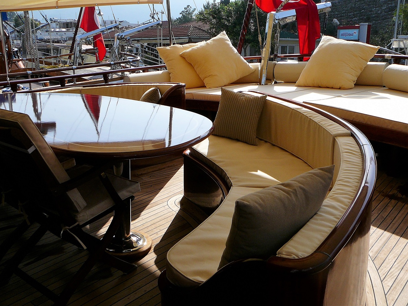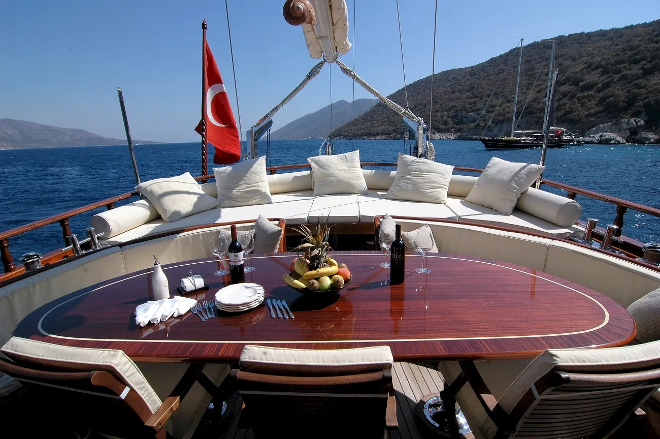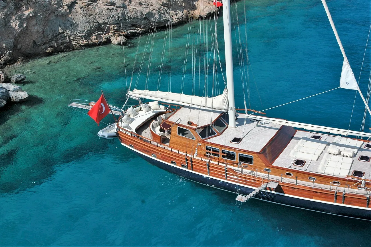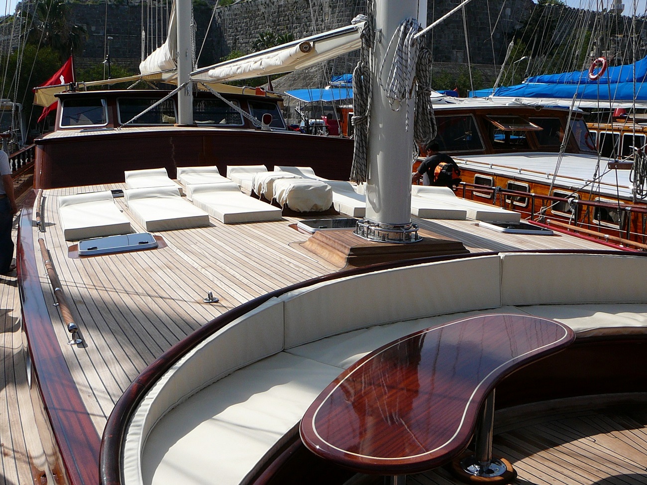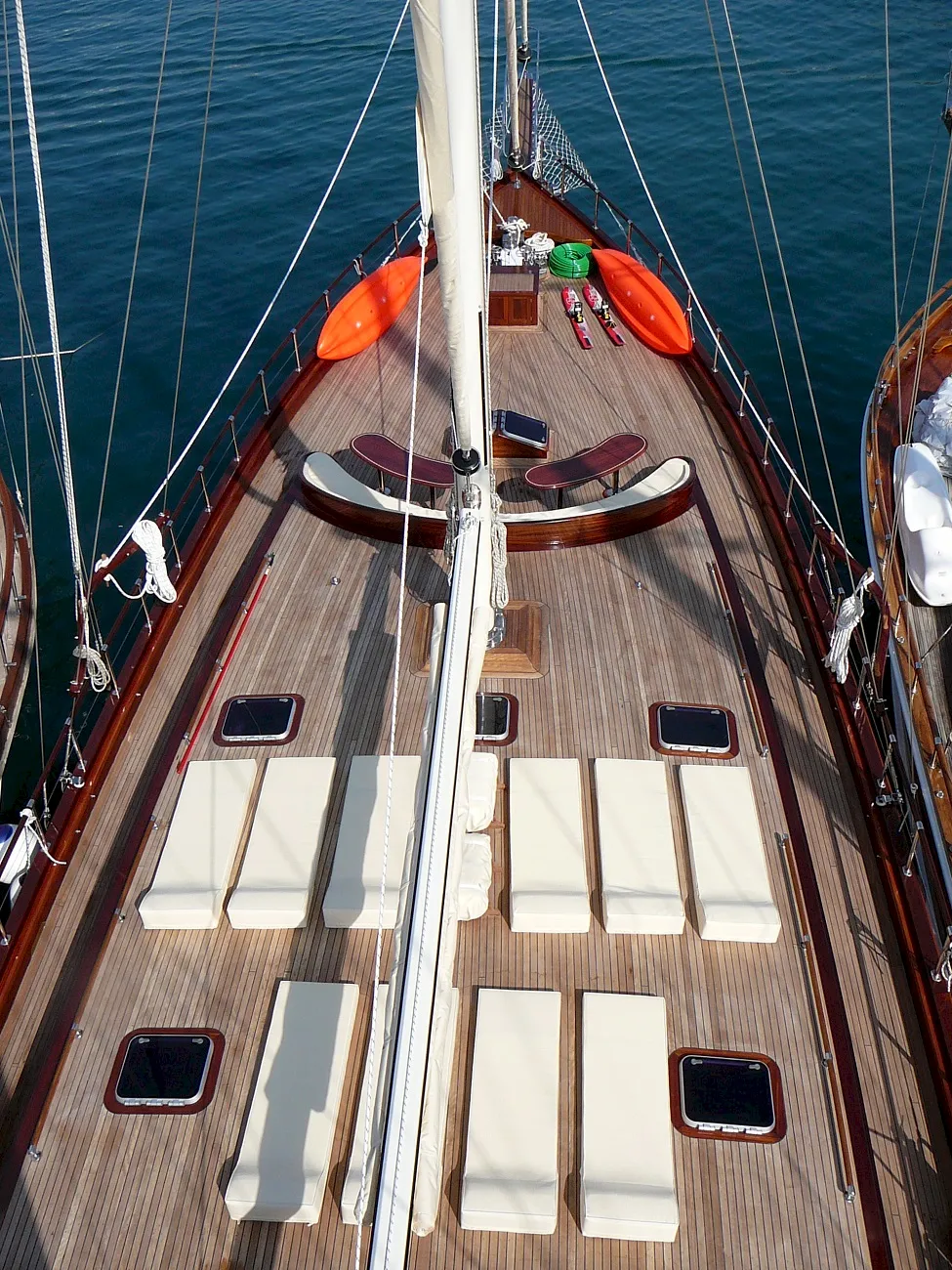Sleeps 12 guests in 6 large cabins (+2 small children with additional child beds) 2 Master(double bed: 150 x 210 and 180 x 200 cm) 2 Double (double beds: 150 x 200) 2 Twin (single beds: 90 x 200 – which could also convert into King Size double beds upon request) Ensuite bathrooms with shower cabins and electric toilets | |